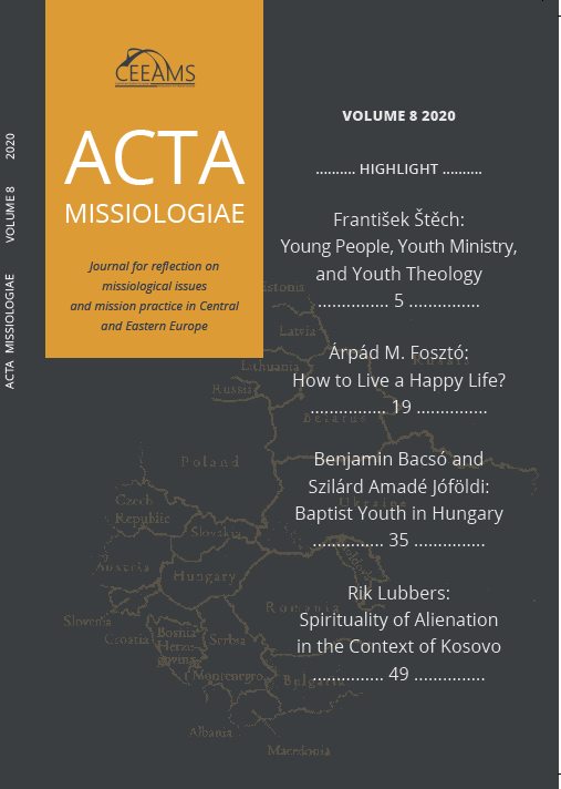 In his contribution as one of the key-note speakers of the conference, František Štĕch creates a broad framework for conversations on youth and mission in Central and Eastern Europe. He does so by identifying different levels of the conversation where youth are not only research objects and “missionary targets” but active agents who engage and shape understandings and practices of Christian mission in the region. Árpád Fosztó’s article calls attention to the importance of cultivating “youth” through the means of character formation. Fosztó relates youth ministry and the Christian education of the youth to the broader and historical cultural heritage of character formation and invites the reader to draw lessons from a parallel reading of Stoic philosophers and Christian theology in order to cultivate virtuous lives. Fosztó’s article is a call to go beyond egocentrism and the need to educate youth for loving and serving the neighbor and thus achieve a “happy life.” -